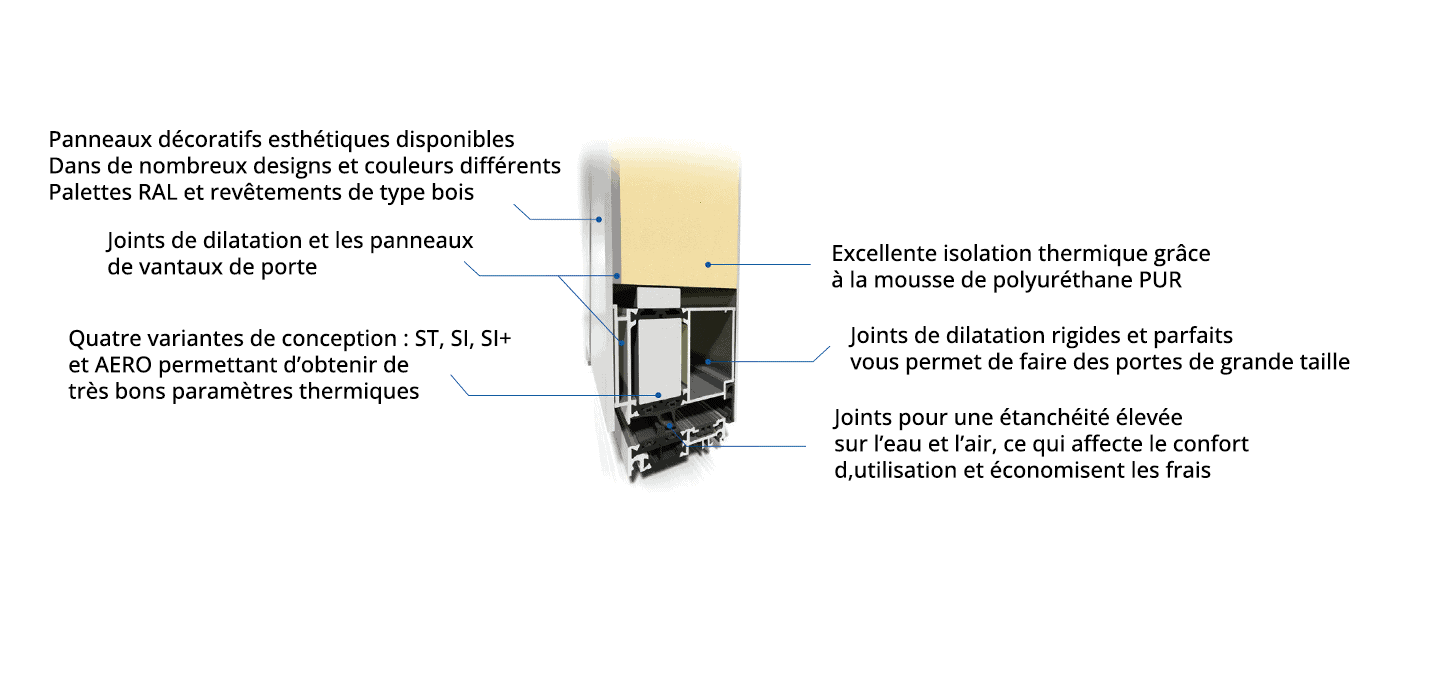 UD jusqu’à 0,63 W/m2K (pour MB-86 Aero à panneau de 77 mm)